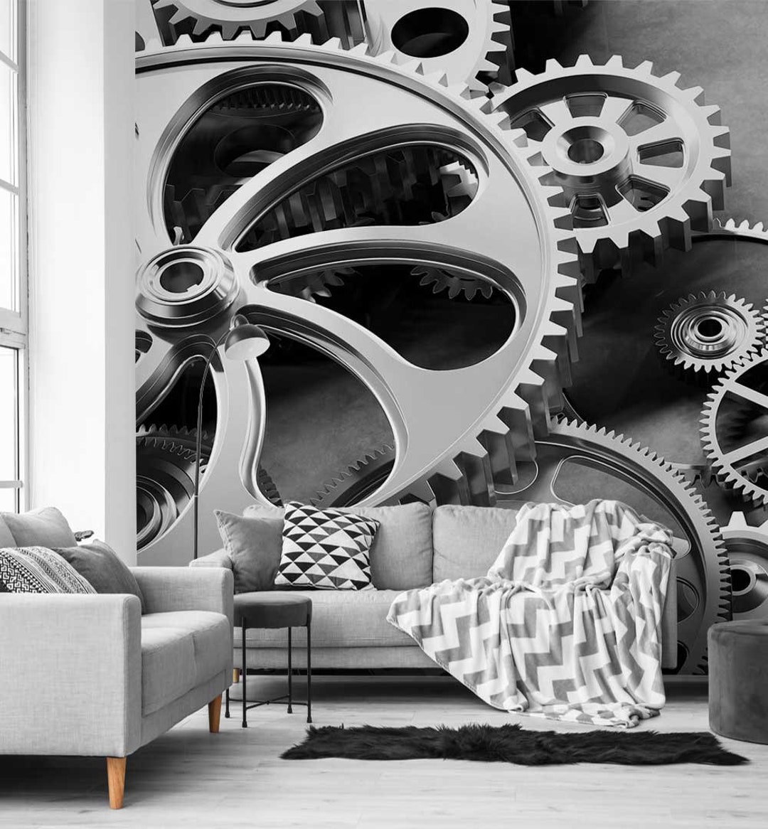 Wall Mural Different Gears In The Clockwork Classic 150g Sqm Etsy Uk